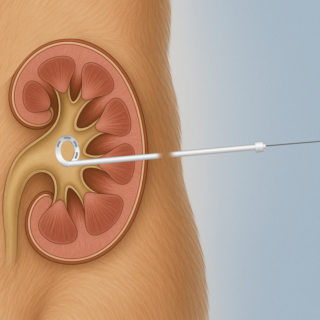 경피적 신루술은 요관이 결석, 종양, 협착 등으로 막혀 소변이 신장에 고이는 경우, 신장에 직접 배액관(카테터)을 삽입해 소변을 외부로 배출시키는 중재적 시술입니다.
